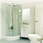 O design interior inclui sofá e TV. O quarto inclui casa de banho separada, banheira e chuveiro, lençóis de banho e toalhas.